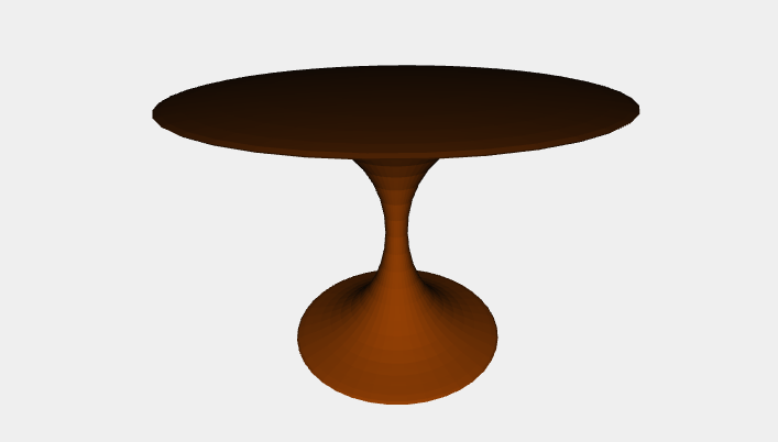 With bezier was realized the profile curve of the table. The curve was then rotated 360 degrees, in this way, the solid of rotation is generated using the function creaSolidoRotazione that uses inside the function Rotational Surface:
