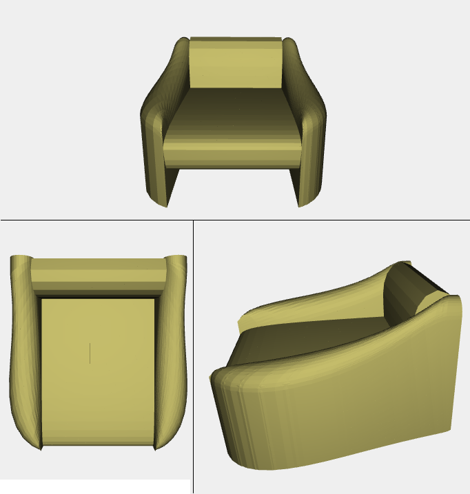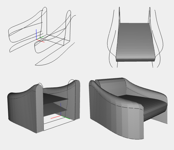 In the modeling of the arms of the chair was used the Hermite function to generate surfaces.